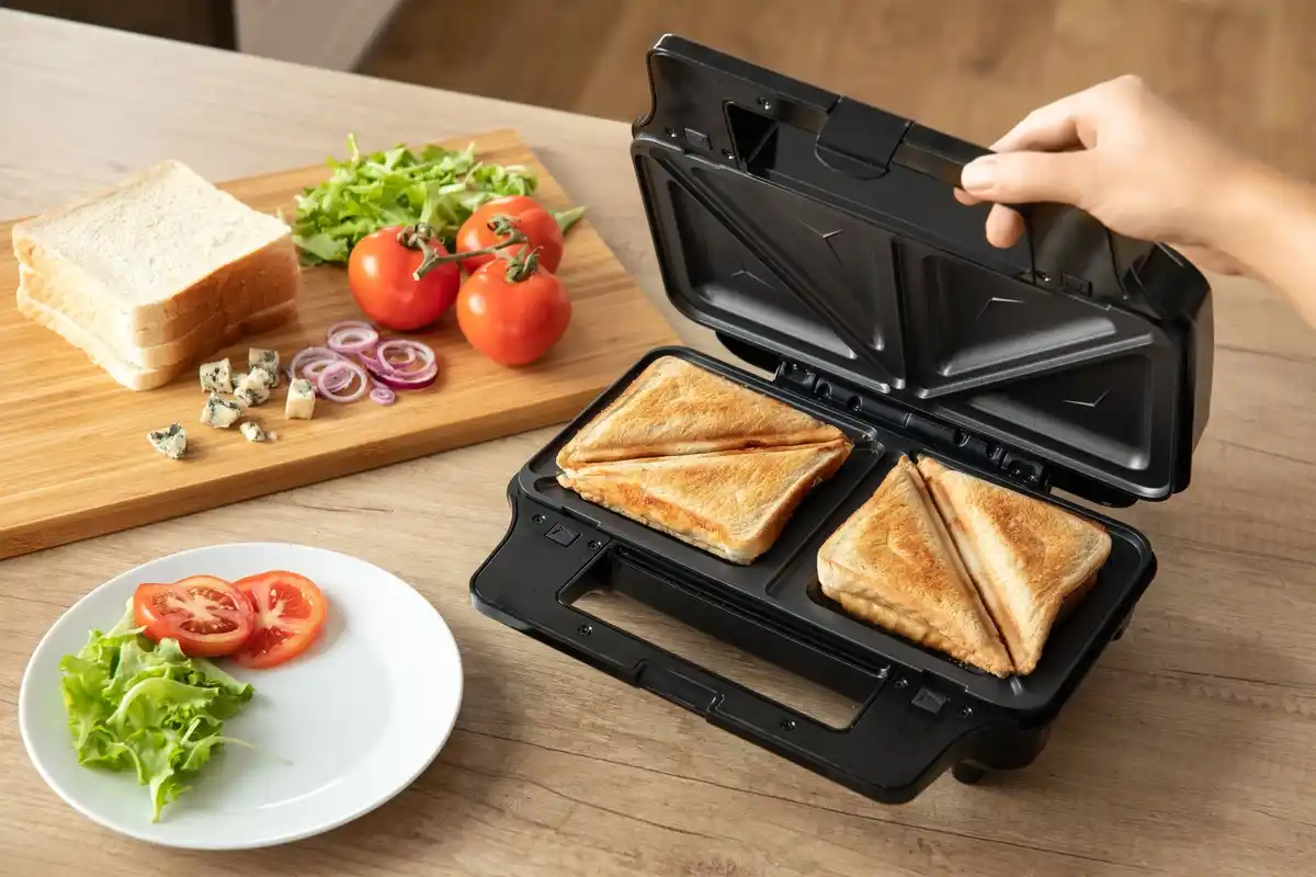 Описание: Мультипекарь с эффективной антипригарной поверхностью, который позволяет готовить пиццу, вафли, сэндвичи и другие блюда. У него предусмотрен автоматический отключающий механизм для дополнительной безопасности.