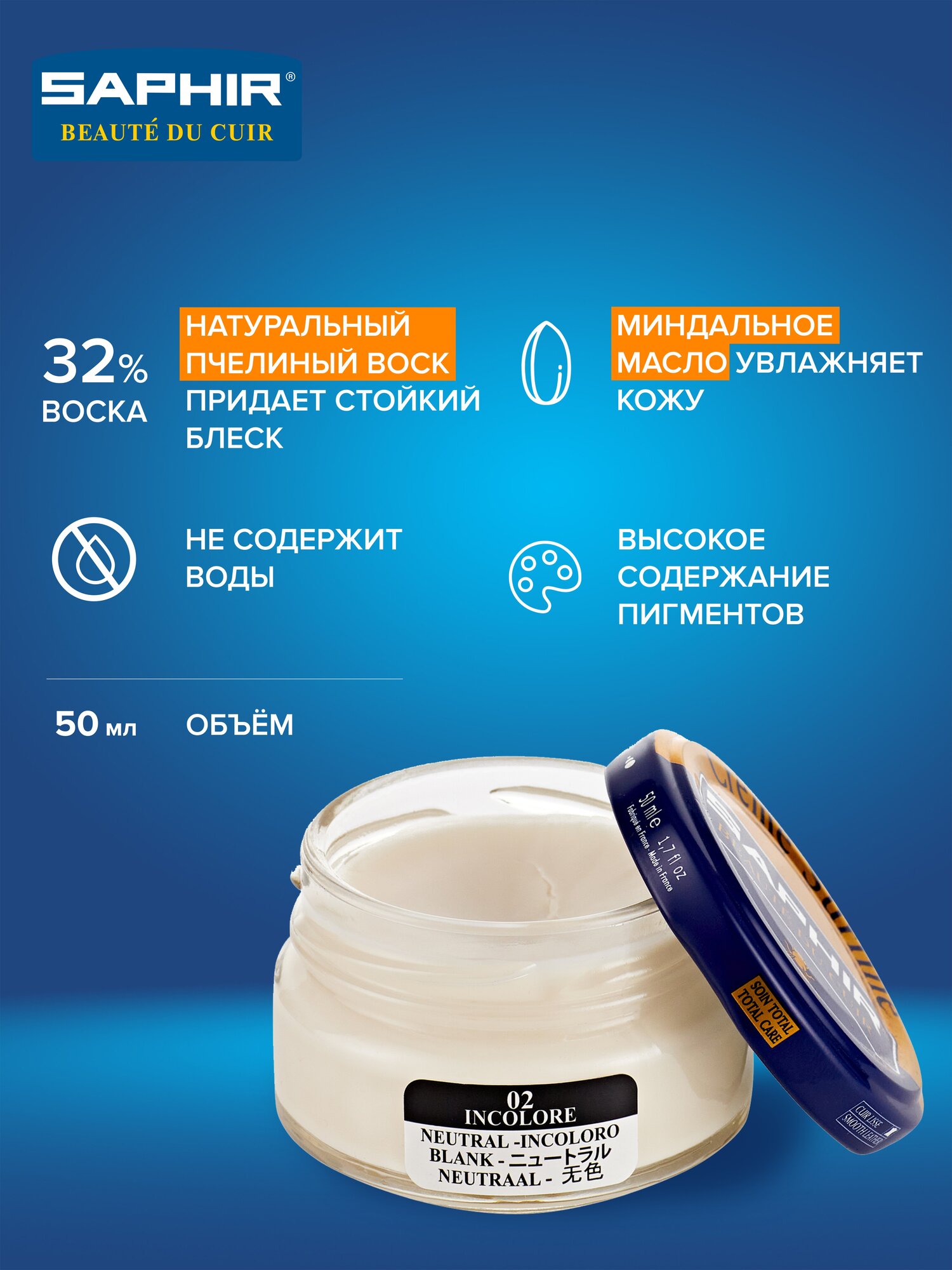0032 Крем для гладкой кожи Saphir Creme Surfine, Цвет Saphir 02 Neutral (Бесцветный)