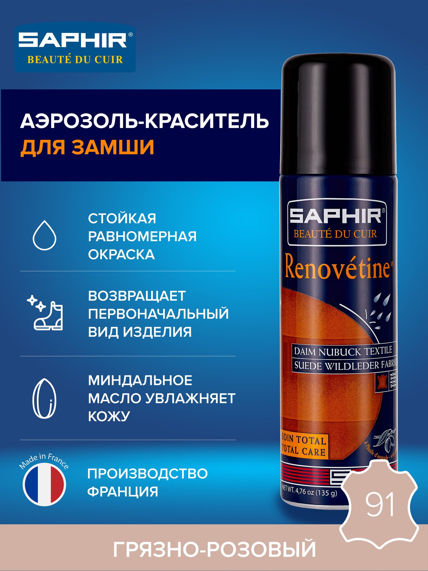 Купить 0204 Краситель для замши Saphir Renovetine Special Daim Nubuck Suede, Цвет Saphir 91 Vieux rose (Увядшая роза) с доставкой по всей России.
