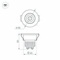 Высота 50 мм. Диаметр 50 мм. Врезное отверстие 45 мм. Вес товара 0.118 кг.
