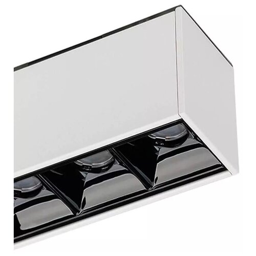 Светильник для магнитных треков шириной 45мм, 12Вт. Цвет свечения теплый 3000K, световой поток 800лм, угол 15°, CRI>90. Корпус прямоугольный, металл, цвет черный, IP20. Размеры LxWxH 322x35x43мм. Входное напряжение DC24V, мощность 12Вт. Драйвер DС24V/AC230V поставляется отдельно. Диммируется только с 026407(1), 027633.