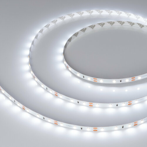 Поставка под заказ от 300 м. Светодиодная лента RT серии A60. Светодиоды SMD 2835, 60 шт/м, белая плата шириной 8 мм, скотч 3M. Цвет белый 6000K, индекс цветопередачи CRI>85, угол 120°. Питание 12 В, мощность 2 Вт/м (10 Вт на 5 м). Размеры 5000x8x1.5 мм. Мин. отрезок 50 мм, 3 светодиода. .
