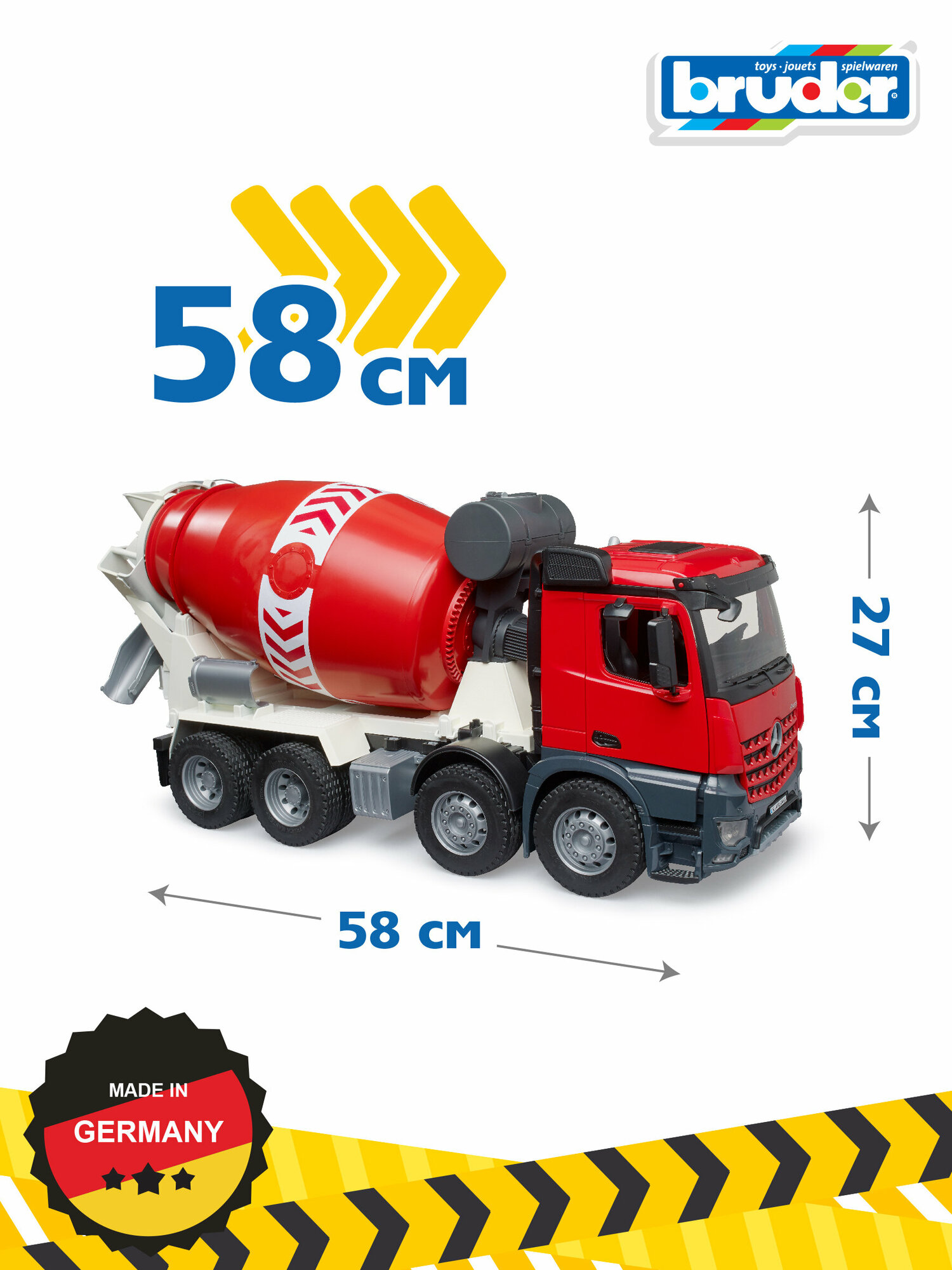 Брудер, Бетономешалка Mercedes-Benz Arocs (красная), Bruder, длина 58 см, 03-655: сравнение цен, характеристики, фото, актуальное наличие и цены.