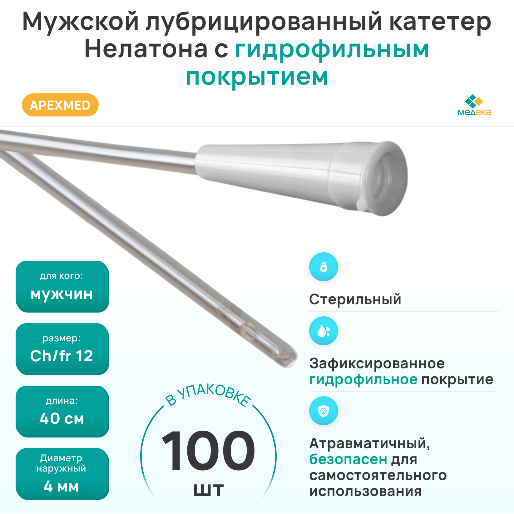 0301-12-12 Апексмед (Apexmed) Лубрицированный катетер с гидрофильным покрытием, тип Нелатон, мужской, Ch12, (100 шт.): сравнение цен, характеристики, фото, актуальное наличие и цены.