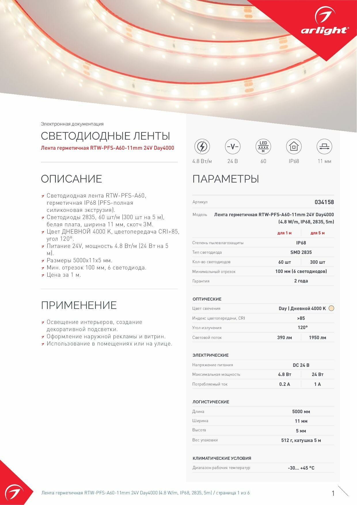 Светодиодная герметичная лента RTW серии B60, IP65 (SE - силиконовый верхний слой). Светодиоды SMD 5060, 60 шт/м, белая плата шириной 10 мм, скотч 3M. Цвет RGB + теплый 3000K, индекс цветопередачи CRI>85, угол 120°. Питание 24 В, мощность 14.4 Вт/м (72 Вт на 5 м). Размеры 5000x10x2.7 мм. Мин. отрезок 166.67 мм, 10 светодиодов. .