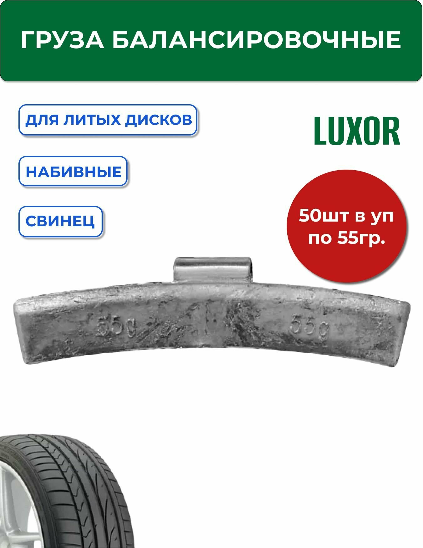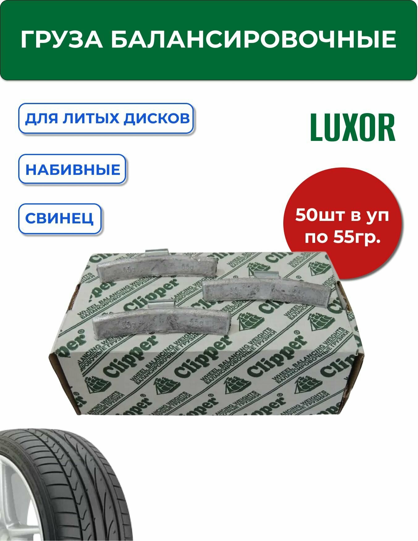 0355 Pb Груза набивные 55 г свинцовые для литых дисков (уп. 50 шт) Clipper