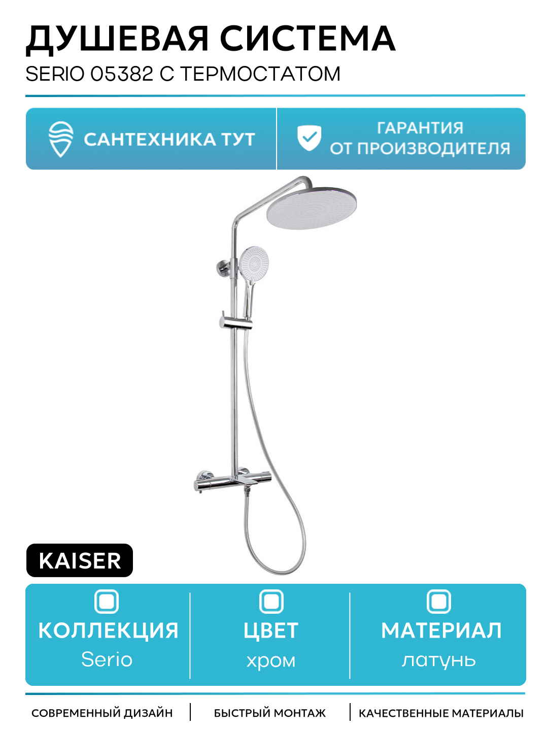 Душевая система с термостатом Kaiser Serio 05382 Цвет хром: сравнение цен, характеристики, фото, актуальное наличие и цены.