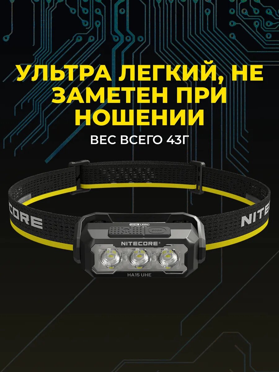 Налобный фонарик HA15 UHE Откройте для себя мир ярких открытий и сделайте каждую ночь незабываемой с NITECORE HA15 UHE — новейшим представителем нашей знаменитой серии HA. Этот фонарь, весом всего 43 г