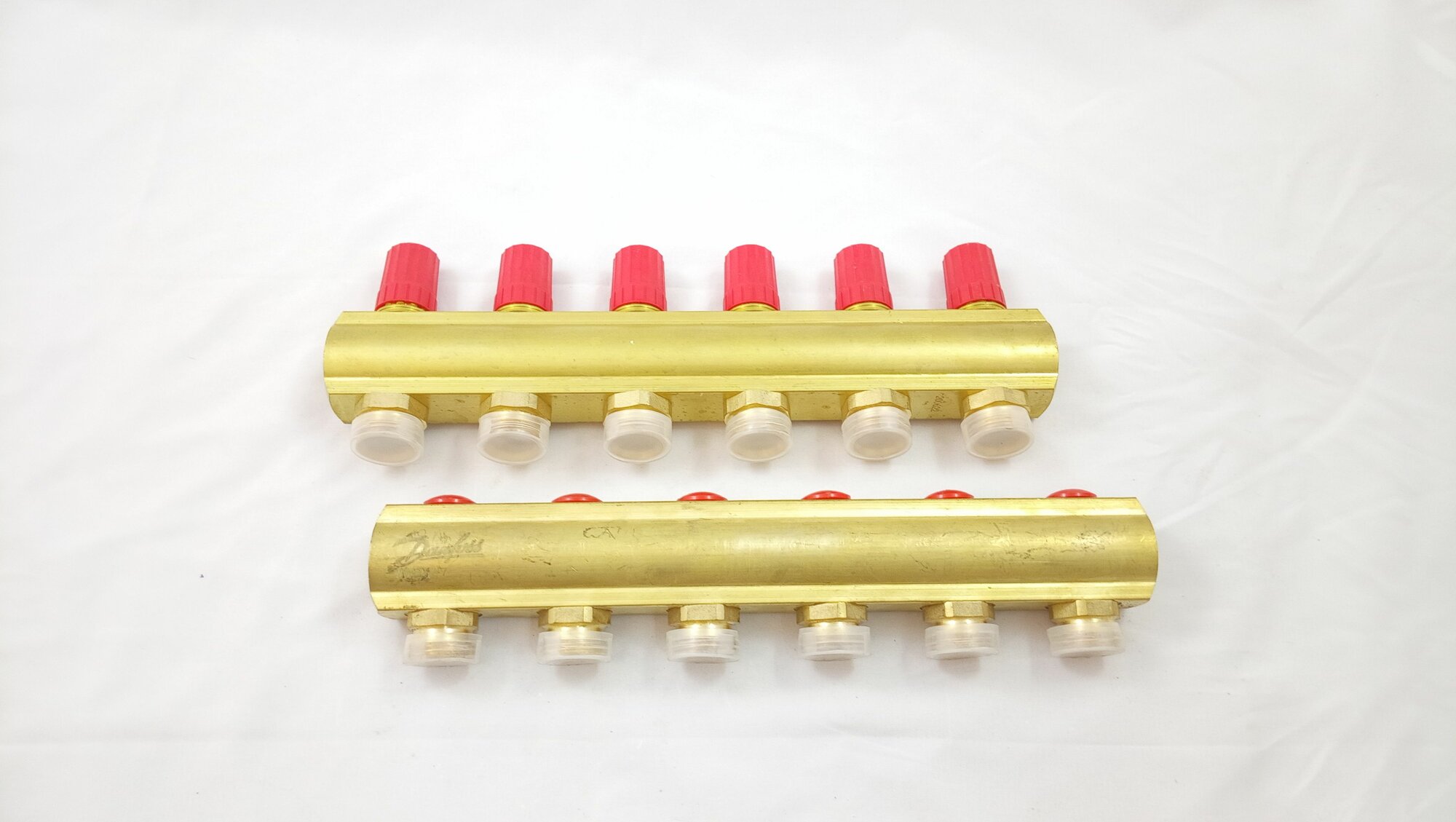 088U0506 Коллекторы FHF-6 для 6 контуров Danfoss Коллекторы Данфосс применяются для регулирования теплоотдачи в системах гидравлических теплых полов. Оснащены втроенными клапанами с преднастройкой для балансировки контуров теплого пола. На клапана могут устанавливаться термоэлектрические приводы TWA-A. Номенклатура доступная для заказа включает в себя аксессуары для коллекторов: кронштейны, концевые секции с автоматическими и ручными воздухоотводчиками, шаровые краны, термоменты и адаптеры для соединения коллекторов и уменьшения присоединительной резьбы коллектора.