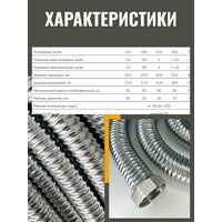 Нержавеющая гибкая подводка 300 мм STACORT изготовлена из гофрированной отожженной трубы с внутренним диаметром 36,0 мм. из нержавеющей стали марки SUS304.