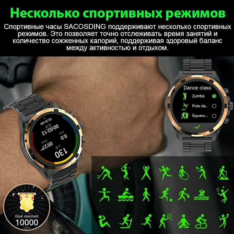 Купить 1.43 Amoled экран смарт-часы для мужчин и женщин, с кислородом крови, монитор сердечного ритма, фитнес-трекер, Bluetooth звонки, IP67 водонепроницаемый с доставкой по всей России.