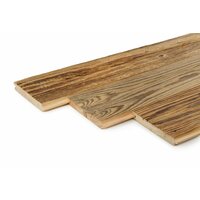 Стеновые панели из амбарной доски Woodgross имеют соединение по кромке типа шип-паз. Замок шип-паз позволяет существенно ускорить монтаж и обеспечивает надежную фиксацию с соседними досками. Лицевая сторона брашированная (обработана щеткой) с сохранением естественной, природной фактуры и цвета. Тыльная сторона фрезерованная.