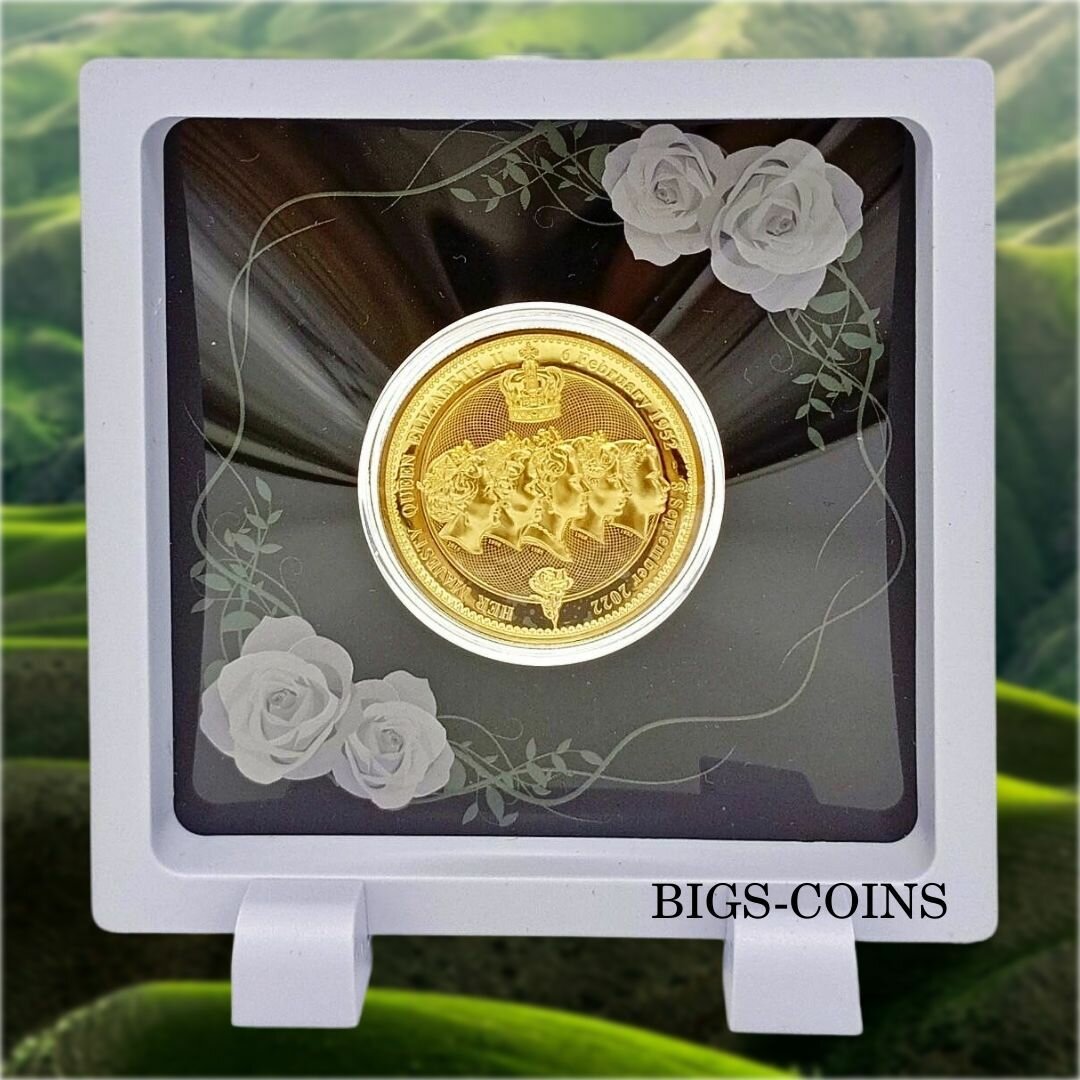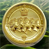На лицевой стороне изображены пять портретов королевы Великобритании Елизаветы II, котрые были отчеканены на английских монетах на весь период правления королевы.