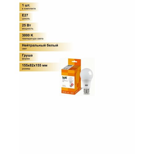 (1 шт.) Светодиодная лампочка IEK ЛОН A80 E27 25W(2500lm) 3000К 2K матовая 155x82x82 LLE-A80-25-230-30-E27 Нейтральный белый. Цоколь E27: сравнение цен, характеристики, фото, актуальное наличие и цены.