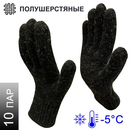 10 пар. ТР ТС 019/2011, ГОСТ 12.4.252-2013. Полушерстяные перчатки без покрытия. Плотность 9/10. Утепленные, режим комфортной эксплуатации до - 5℃. Трикотаж 7,5 класса вязки, линейная плотность 240 текст, вес 62 гр/пара, размер 10, длина 24 см. Цвет черно-серый. Перчатки ВИНТЕР оптимально сочетают в себе защиту от умеренно низких температур (до -5℃) с превосходной эргономикой. Перчатки отлично сидят по руке, не сковывают движения, обеспечивают комфорт и высокую тактильную чувствительность.