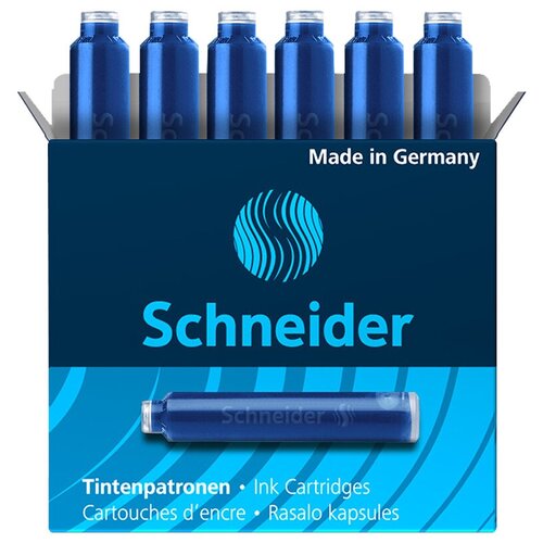 Письменные принадлежности Schneider разрабатываются и производятся только в Германии, их отличают функциональный дизайн, безупречное качество, надежность и экологичность. Чернильный картридж подходит для перьевых ручек Schneider и большинства других производителей. Объем чернил 2 мл. Длина картриджа - 3,8 см, диаметр 0,7 см. Длина письма до 450 метров. Сделано в Германии!