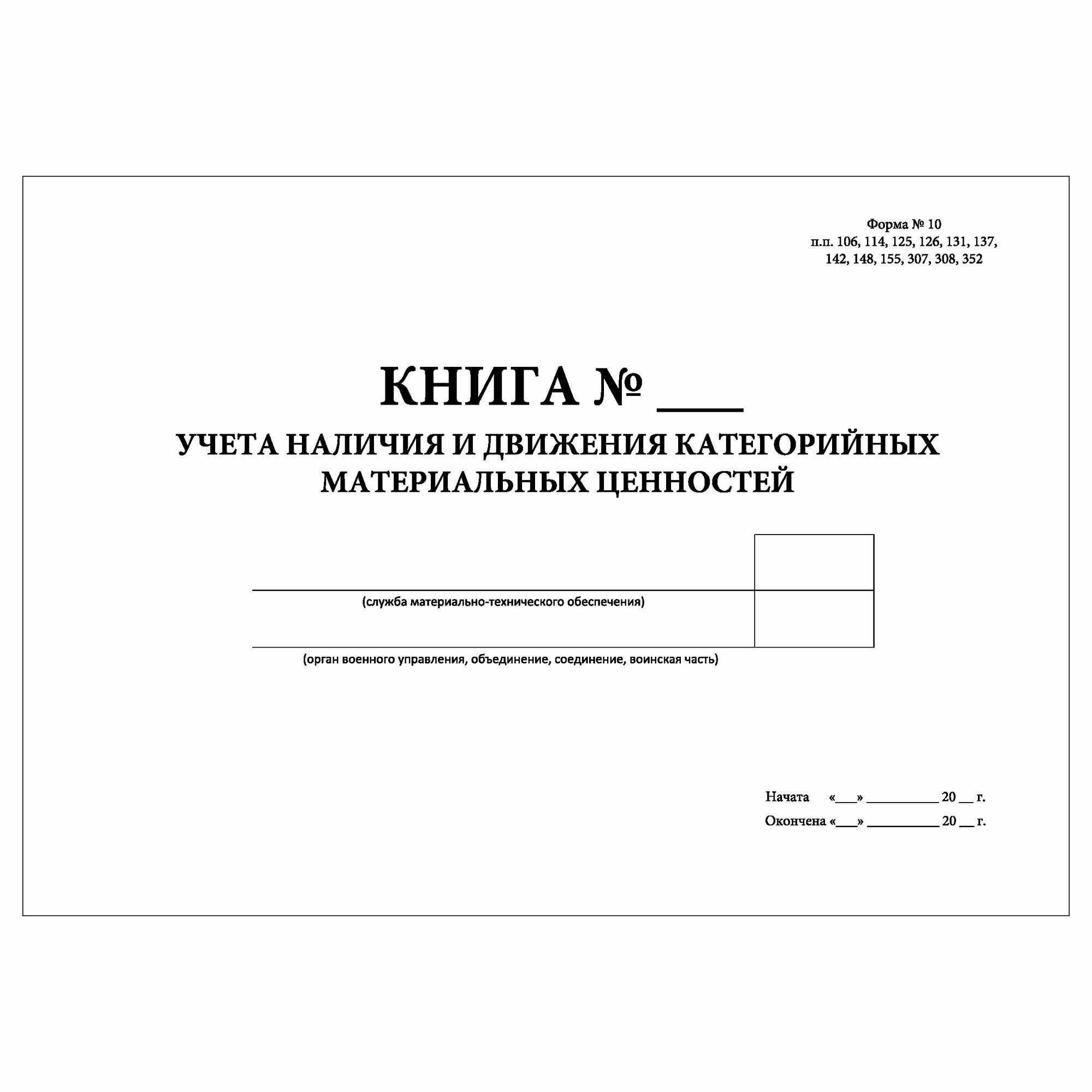 (10 шт.), Книга учета наличия и движения категорийных материальных ценностей (Форма № 10) Формат А3 (150 лист, полист. нумерация, тв. переплёт): сравнение цен, характеристики, фото, актуальное наличие и цены.