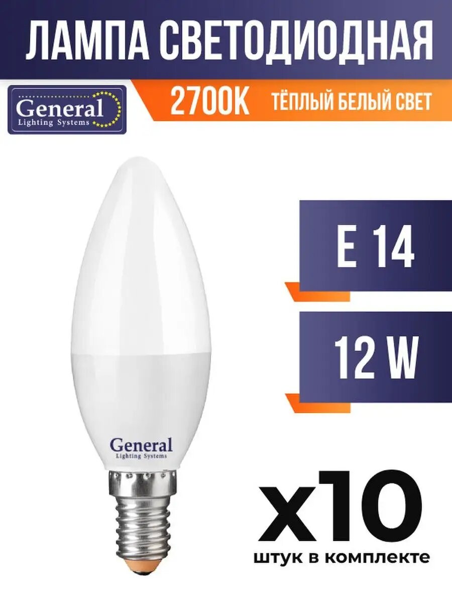 Купить (10 шт.) — Лампа General св/д, E14, 12W с доставкой по всей России. (10 шт.) — Лампа General св/д, E14, 12W: сравнение цен, характеристики, фото, актуальное наличие и цены.