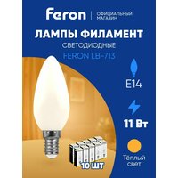 Купить (10 шт.) Лампа светодиодная Feron E14 11W 2700K Свеча Матовая LB-713 38005 с доставкой по всей России.