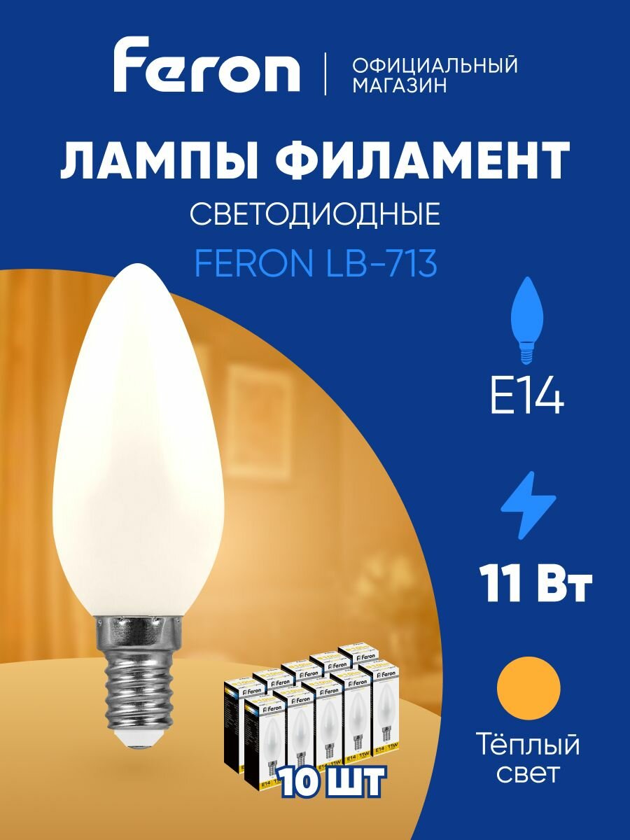 (10 шт.) Лампа светодиодная Feron E14 11W 2700K Свеча Матовая LB-713 38005: сравнение цен, характеристики, фото, актуальное наличие и цены.