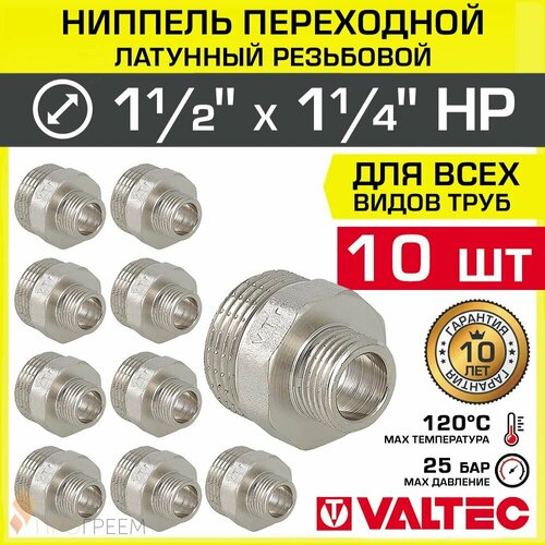 10 шт — Ниппель переходной 1 1/2″ х 1 1/4″ НР VALTEC латунный сантехнический / Фитинг-переходник с наружной резьбой для соединения труб разного диаметра в отоплении и водоснабжении, VTr.580. N.0807: сравнение цен, характеристики, фото, актуальное наличие и цены.