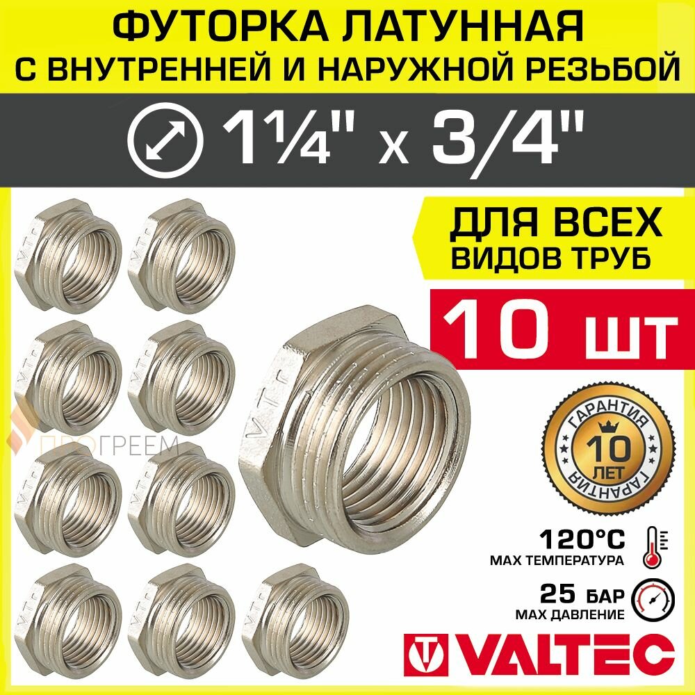 10 шт — Футорка переходная 1 1/4″ х 3/4″ НР-ВР VALTEC латунный сантехнический / Фитинг-переходник резьбовой для соединения труб, VTr.581. N.0705: сравнение цен, характеристики, фото, актуальное наличие и цены.