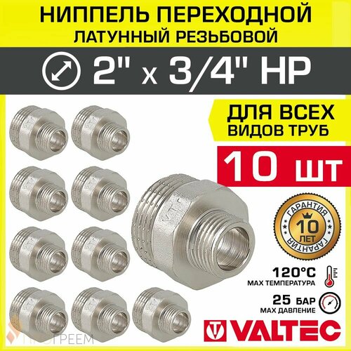 10 шт — Ниппель переходной 2″ х 3/4″ НР VALTEC латунный сантехнический / Фитинг-переходник с наружной резьбой для соединения труб разного диаметра в отоплении и водоснабжении, VTr.580. N.0905: сравнение цен, характеристики, фото, актуальное наличие и цены.
