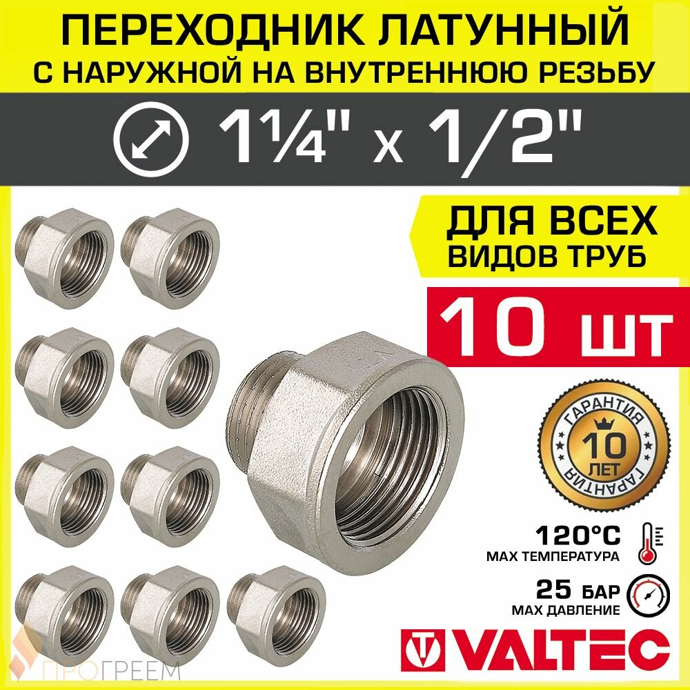 10 шт — Переходник 1 1/4″ ВР х 1/2″ НР VALTEC латунный сантехнический / Фитинг резьбовой — переход с наружной на внутреннюю резьбу для соединения труб диаметром ДУ32 и ДУ15, арт. VTr.592. N.0704: сравнение цен, характеристики, фото, актуальное наличие и цены.