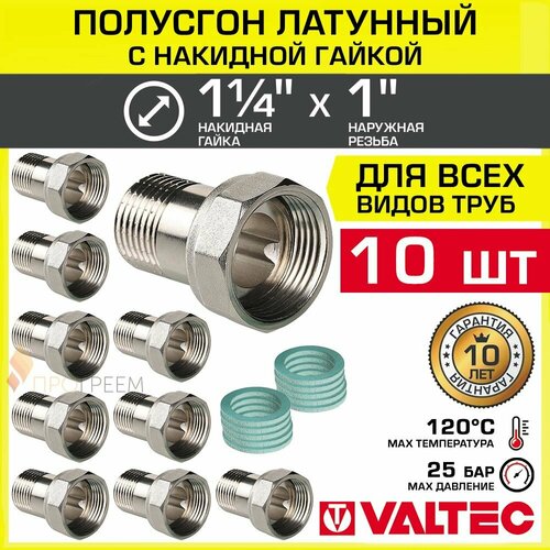 10 шт — Полусгон 1 1/4″ Накидная гайка х 1″ НР VALTEC, латунный никелиров. / Фитинг резьбовой для монтажа арматуры, расширительного бака, котла к трубе ДУ25-32 с разъемным соединением, VTr.613. N.0706: сравнение цен, характеристики, фото, актуальное наличие и цены.