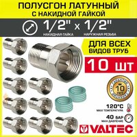 Купить 10 шт — Полусгон 1/2″ Накидная гайка-НР VALTEC, латунный никелированный / Фитинг резьбовой для монтажа арматуры, расширительного бака, котла к трубе ДУ15 с разъемным соединением, VTr.613. N.0404 с доставкой по всей России.