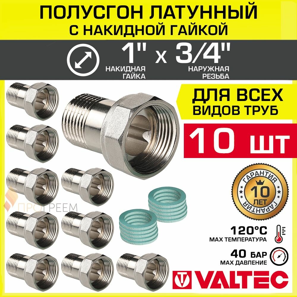 10 шт — Полусгон 1″ Накидная гайка х 3/4″ НР VALTEC, латунный никелиров. / Фитинг резьбовой для монтажа арматуры, расширительного бака, котла к трубе ДУ20-25 с разъемным соединением, VTr.613. N.0605: сравнение цен, характеристики, фото, актуальное наличие и цены.