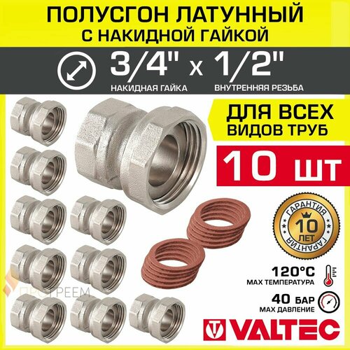 Купить 10 шт — Полусгон 3/4″ Накидная гайка x 1/2″ ВР VALTEC, латунный никелиров. / Фитинг резьбовой для монтажа арматуры, расширительного бака, котла к трубе ДУ15-20 с разъемным соединением, VTr.614. N.0504 с доставкой по всей России. 10 шт — Полусгон 3/4″ Накидная гайка x 1/2″ ВР VALTEC, латунный никелиров. / Фитинг резьбовой для монтажа арматуры, расширительного бака, котла к трубе ДУ15-20 с разъемным соединением, VTr.614. N.0504: сравнение цен, характеристики, фото, актуальное наличие и цены.
