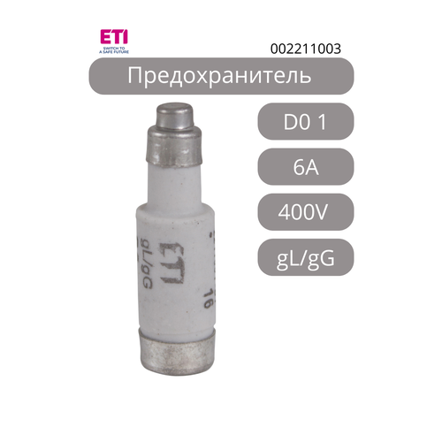 10 шт, Предохранитель D01 gL/gG 6A 400V (E14), ETI 002211003: сравнение цен, характеристики, фото, актуальное наличие и цены.