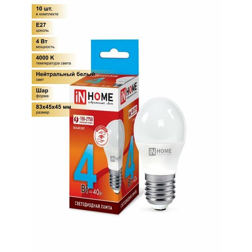 (10 шт.) Светодиодная лампочка ASD/inHome VC шар P45 E27 4W(360lm) 4000К 4K 83×45 (без пульсации) 0593 Нейтральный белый. Цоколь E27: сравнение цен, характеристики, фото, актуальное наличие и цены.