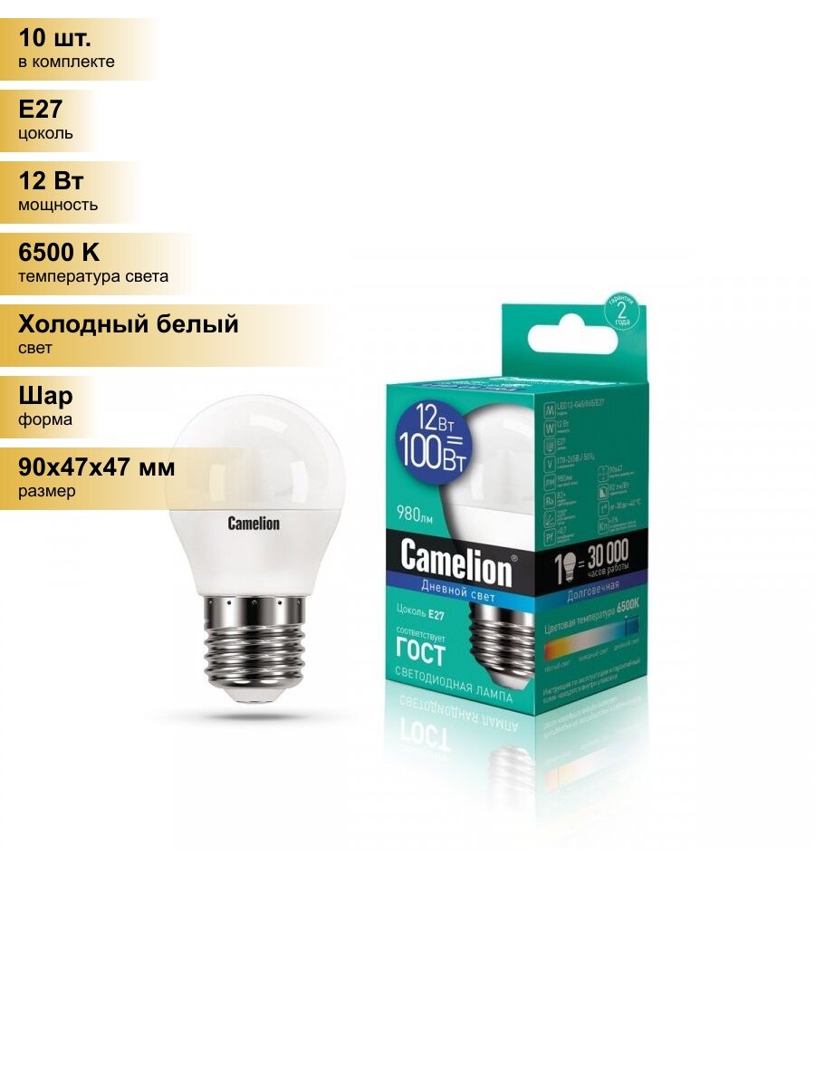(10 шт.) Светодиодная лампочка Camelion Шар G45 E27 12W(980lm 220°) 6500K 6K матов. 90×47 пластик LED12-G45/865/E27 Холодный белый. Цоколь E27: сравнение цен, характеристики, фото, актуальное наличие и цены.