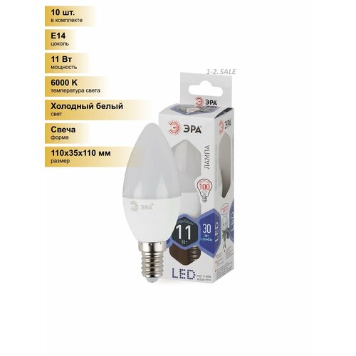 (10 шт.) Светодиодная лампочка ЭРА стандарт свеча B35 E14 11W(880lm) 6000K 6K 110×35 2424 Холодный белый. Цоколь E14: сравнение цен, характеристики, фото, актуальное наличие и цены.