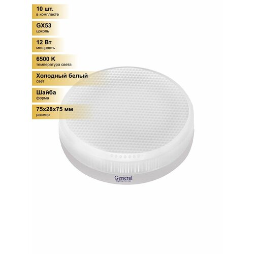 (10 шт.) Светодиодная лампочка General GX53 12W 6500K 6K 75×28 призма пластик GLDEN-GX53-12-230-GX53-6500 660337 Холодный белый. Цоколь GX53: сравнение цен, характеристики, фото, актуальное наличие и цены.