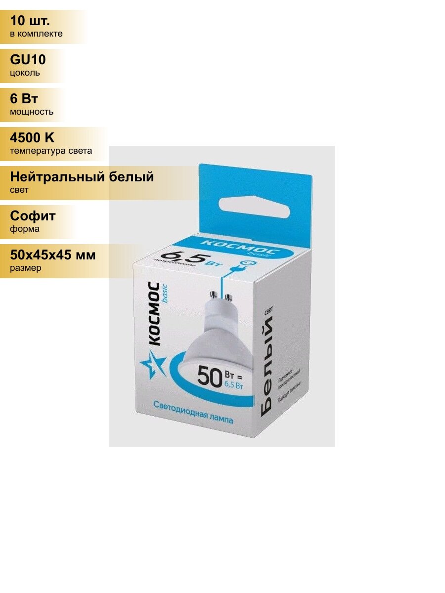 (10 шт.) Светодиодная лампочка Космос GU10 220V 6,5W (6W) (500lm) 4500K 4K матов. 45×50 LkecLED6.5wGU10C45 Нейтральный белый. Цоколь GU10: сравнение цен, характеристики, фото, актуальное наличие и цены.