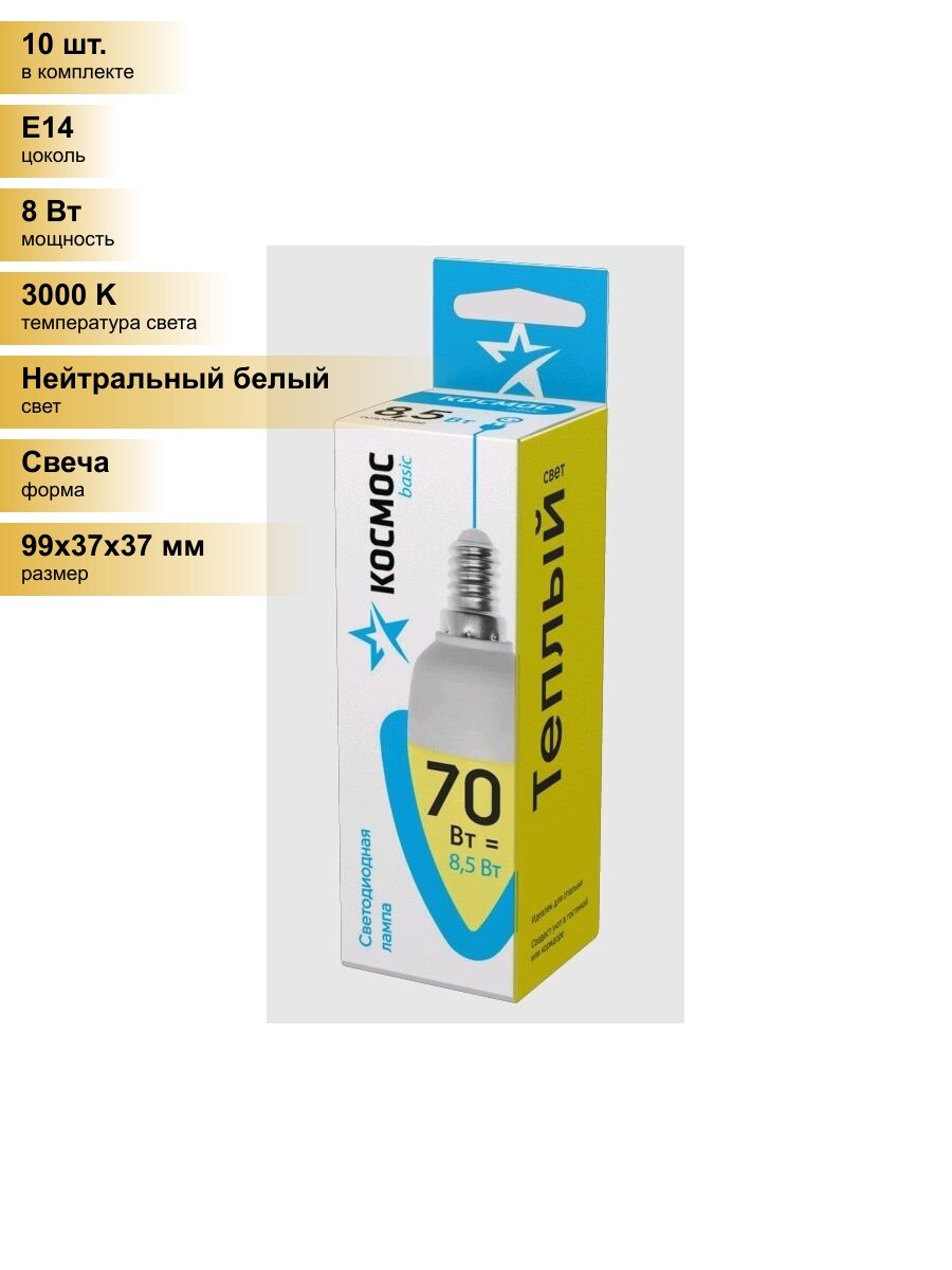 (10 шт.) Светодиодная лампочка Космос свеча E14 8,5W (8W) (720lm) 3000K 2K матов. 99×37 LkecLED8.5wCNE1430 Нейтральный белый. Цоколь E14: сравнение цен, характеристики, фото, актуальное наличие и цены.