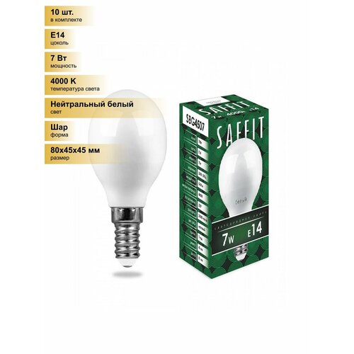 (10 шт.) Светодиодная лампочка Saffit шар G45 E14 7W(560Lm) 4000K 4K матовая 80×45 SBG4507 55035 Нейтральный белый. Цоколь E14: сравнение цен, характеристики, фото, актуальное наличие и цены.