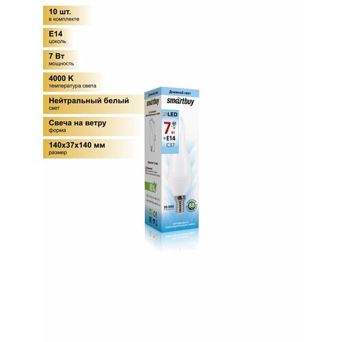 (10 шт.) Светодиодная лампочка Smartbuy свеча на ветру C37 E14 7W(550lm) 4000K 4K матовая пластик SBL-C37Tip-07-40K-E14 Нейтральный белый. Цоколь E14: сравнение цен, характеристики, фото, актуальное наличие и цены.