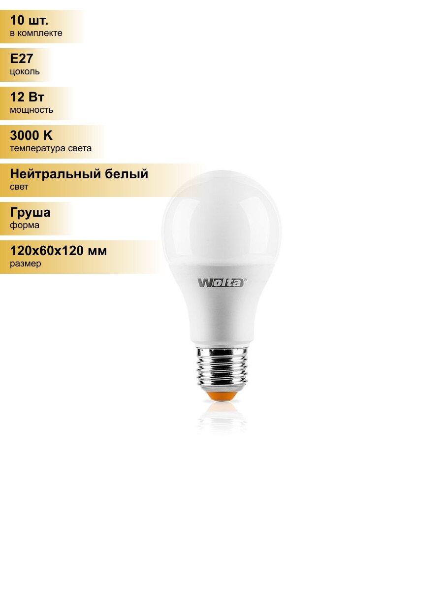 (10 шт.) Светодиодная лампочка Wolta лампа св/д ЛОН A60 E27 12W(1150lm) 3000K 2K 120×60 25Y60BL12E27 Нейтральный белый. Цоколь E27: сравнение цен, характеристики, фото, актуальное наличие и цены.
