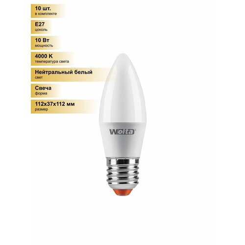 (10 шт.) Светодиодная лампочка Wolta лампа св/д свеча C37 E27 10W(900Lm) 4000K 4K 4K 112X37 25SC10E27 Нейтральный белый. Цоколь E27: сравнение цен, характеристики, фото, актуальное наличие и цены.