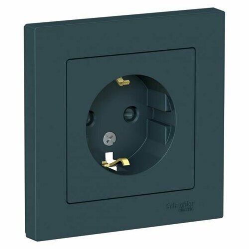 Розетка Systeme Electric (ранее Schneider Electric) серии AtlasDesign (в сборе, цвет изумруд) одинарная с заземлением и без шторок подходит для сетей 250 В, на ток 16 А. - Заземляющий контакт обеспечивает дополнительную защиту от удара электрическим током. При наличии заземления электрический потенциал уходит в землю, защищая человека. - Лицевые детали из качественного ABS-пластика, устойчивого к царапинам и УФ-излучению. - Изделие поставляется в комплекте с рамкой того же цвета.