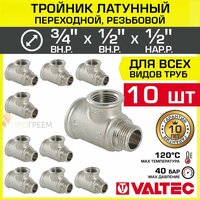 10 шт — Тройник 3/4″ ВР х 1/2″ ВР х 1/2″ НР переходной VALTEC, латунный никелированный / Трехходовой фитинг резьбовой для монтажа труб системы отопления и водоснабжения, арт. VTr.134. RN.050404: сравнение цен, характеристики, фото, актуальное наличие и цены.