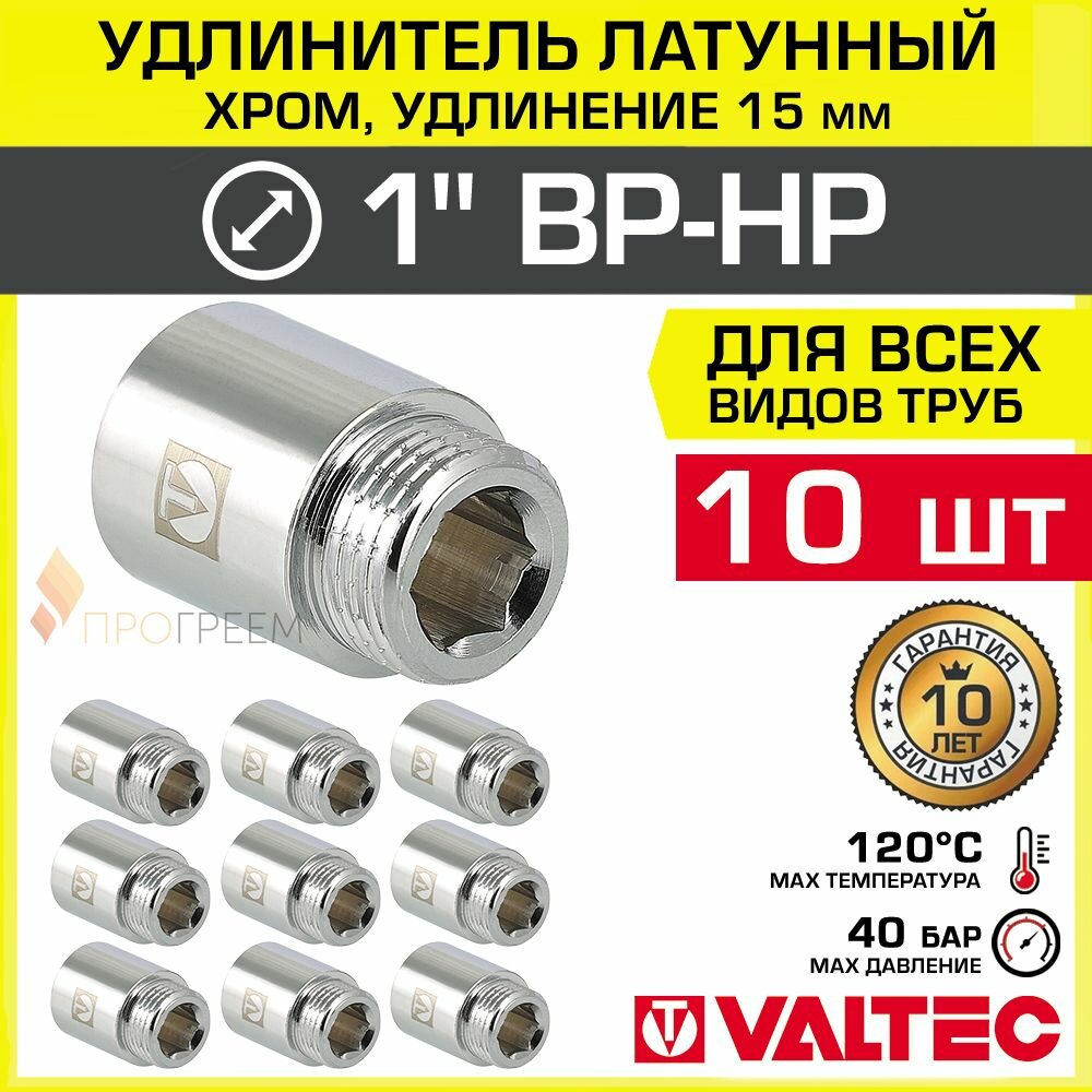 10 шт — Удлинитель 1″ НР-ВР х 15 мм VALTEC хромированный сантехнический / Латунный резьбовой фитинг для удлинения соединений труб ДУ25 в системе отопления и водоснабжения, VTr.198. C.0615: сравнение цен, характеристики, фото, актуальное наличие и цены.