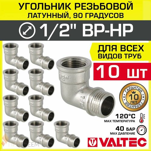 10 шт — Угольник 90 гр. 1/2″ ВР-НР VALTEC, латунный никелированный / Резьбовой фитинг угловой ДУ 15 для монтажа труб, арматуры в системе отопления и водоснабжения, арт. VTr.092. N.0004: сравнение цен, характеристики, фото, актуальное наличие и цены.