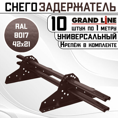 10 штук снегозадержателей на крышу универсальных Grand Line трубчатые 1 м (42Х21мм/20 кронштейнов) оцинкованная сталь (RAL 8017) коричневый: сравнение цен, характеристики, фото, актуальное наличие и цены.