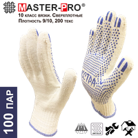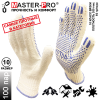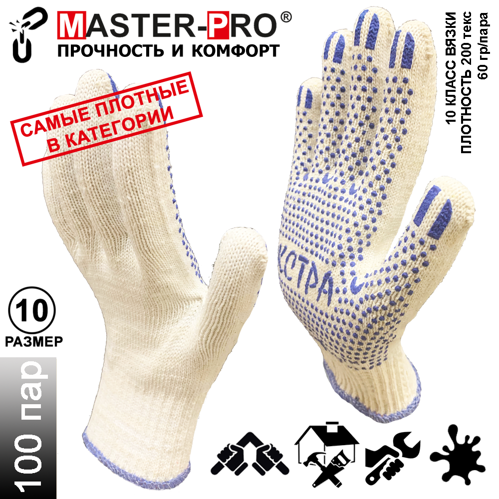 100 пар. Категория А+. Плотные рабочие х/б перчатки Master-Pro ЭКСТРА, 10 класс вязки, плотность 9/10, размер 10 (XL): сравнение цен, характеристики, фото, актуальное наличие и цены.