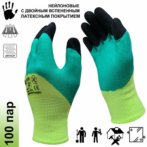 Купить 100 пар. Перчатки рабочие нейлоновые с двойным латексным покрытием Master-Pro торрон грин (2GB), размер 10 (XL) с доставкой по всей России.